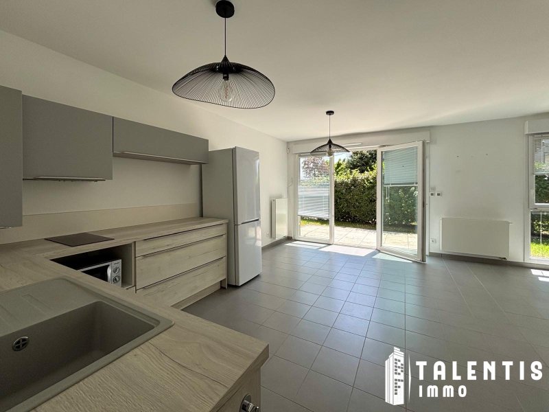 VERTOU, RTE DE CLISSON T3 (74m² 2ch) Lumineux Jardin privatif Double Box Situé au rez-de-chaussée d'une résidence calme et bien entretenue avec espaces verts, ce T3 de 74 m² offre un cadre de vie agréable et fonctionnel. Il se compose d'une belle pièce de vie lumineuse avec accès direct à une terrasse et un petit jardin privatif, d'une cuisine ouverte aménagée et semi équipée (hotte et plaques de cuisson), de deux chambres et d'une salle d'eau avec double vasque et douche à l'italienne. Un double box en sous-sol complète ce bien. Transports en commun à proximité : Bus : 27, 42, 60, 112 et 122. Gare de Vertou. Chauffage individuel gaz. Loyer HC: 1 050.00 . Charges mensuelles: 50.00 comprenant l'entretien des parties communes et la consommation d'eau froide (provisions mensuelles avec régularisation annuelle). Loyer CC: 1 100.00 . Dépôt de garantie: 1 050.00 . Honoraires de location à la charge du locataire : 888.60 TTC (dont 222.15 d'état des lieux inclus). Disponible mi-avril. Réf : LA2274. Honoraires de 889 TTC à la charge du locataire comprenant 222 TTC pour l'état des lieux. Loyer de base 1050 /mois. Provision sur charges 50 /mois, régularisation annuelle. Dépôt de garantie 1 050 . Classe énergie C, Classe climat C Montant estimé des dépenses annuelles d'énergie pour un usage standard : entre 820.00 et 1110.00 sur les années 2021, 2022 et 2023 (abonnements compris). Les informations sur les risques auxquels ce bien est exposé sont disponibles sur le site Géorisques : georisques.gouv.fr. . Talentis, l'immobilier sur mesure.
