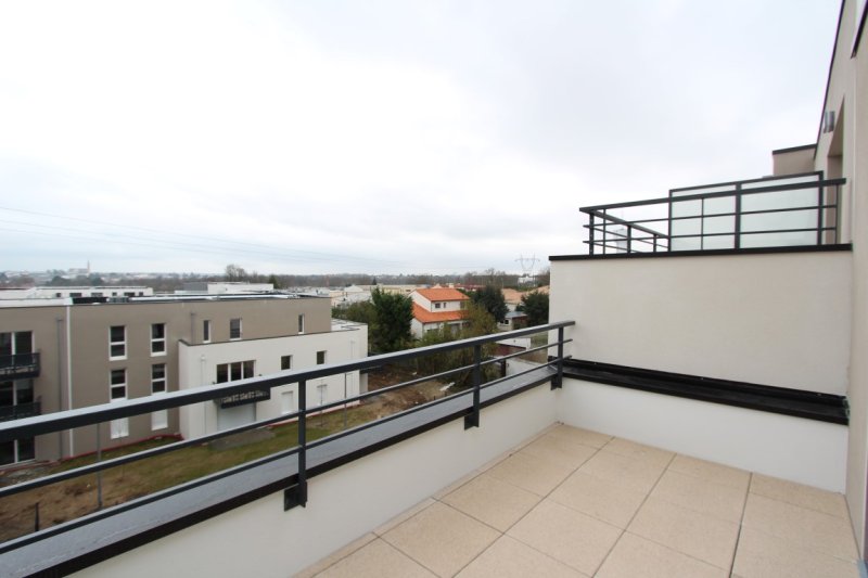 VERTOU - dans résidence BBC à proximité de la gare et des commerces, un appartement type 3 au dernier étage, comprenant une entrée avec placard, un séjour donnant sur une terrasse de 10 m², une cuisine ouverte aménagée et équipée de plaques vitrocéramiques 4 feux et d'une hotte, deux chambres dont une avec placard, une salle de bains, wc, dégagement. Parking Couvert.