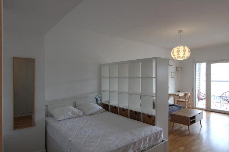 NANTES - CHANTENAY, dans résidence BBC, studio meublé comprenant : une entrée avec placard, un séjour sur parquet avec placard donnant sur un jardin d'hiver de 8 m² sur l'arrière au calme, une cuisine séparée aménagée et équipée (plaques vitrocéramique, un réfrigérateur et micro-ondes/four) une salle d'eau avec wc et machine à laver. Parking couvert. Cave. Eau froide, eau chaude et chauffage compris dans les charges.