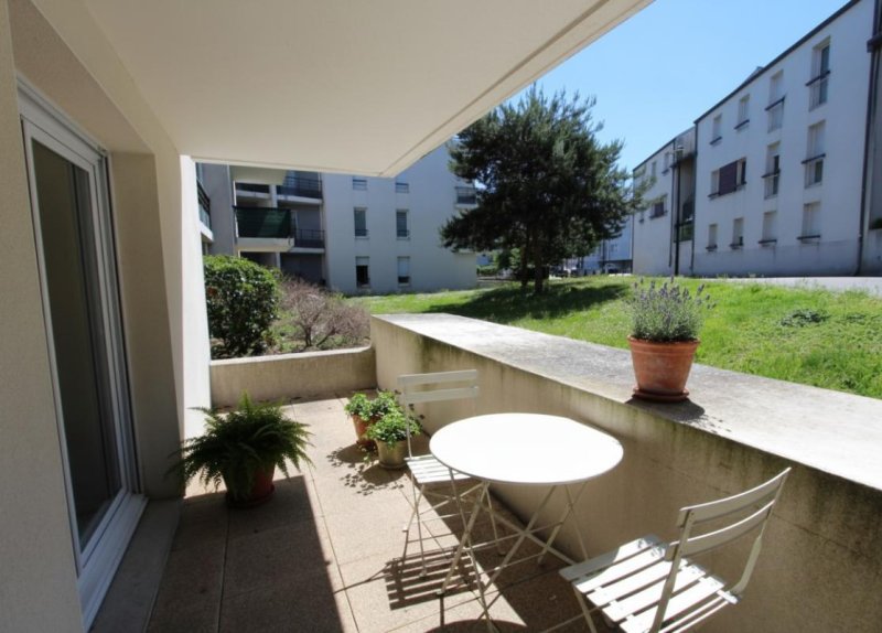 NANTES - QUARTIER DUCHAFFAULT, à 2 minutes du tramway ligne 1, grand logement T2 au RDC, comprenant une entrée avec placard, un séjour carrelé de 20.64 m² ouvrant sur une terrasse de 11 m² , une cuisine aménagée et équipée de four, plaques et hotte, 1 chambre, une salle de bains (baignoire), wc. Le logement bénéficie également d'un garage au sous sol. Logement soumis à la Garantie des Loyers Impayés (GLI). " Les informations sur les risques auxquels ce bien est exposé sont disponibles sur le site Géorisques: www.georisques.gouv.fr
