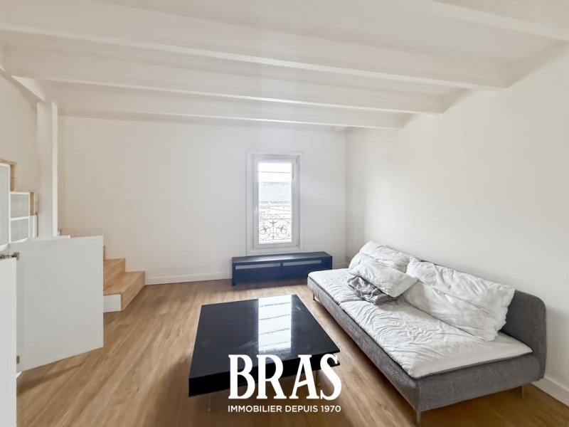 Au 2ème et dernier étage sans ascenseur d'un immeuble plein de charme, un appartement de 2 pièces en duplex récemment rénové, de 33.17 m² carrez ( environ 42m² au sol) comprenant, une cuisine aménagée et équipée (plaques de cuisson, réfrigérateur table top, machine à laver) un salon avec placard sur-mesure, une salle d'eau avec douche, vasque et wc, à l'étage une chambre avec placard.