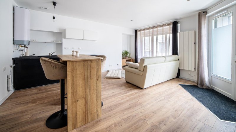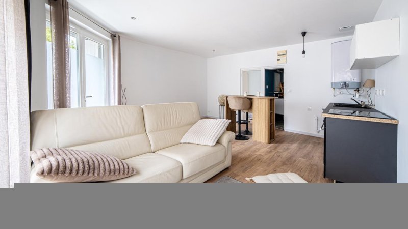 Au pied de la ligne 1 du tramway, au calme, dans une petite résidence de 8 logements avec cour commune, beau T2 offrant pièce de vie exposée sud avec cuisine équipée ouverte, chambre, salle d'eau et WC.