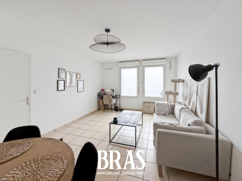 Situé au rez-de-chaussée d'une résidence de 2002, un appartement type 2 de 46.89m², non meublé comprenant une entrée, une pièce de vie, une cuisine séparée, aménagée et équipée (plaques de cuisson, réfrigérateur top, hotte) , une chambre, une salle d'eau avec douche et meuble vasque et un WC séparés.