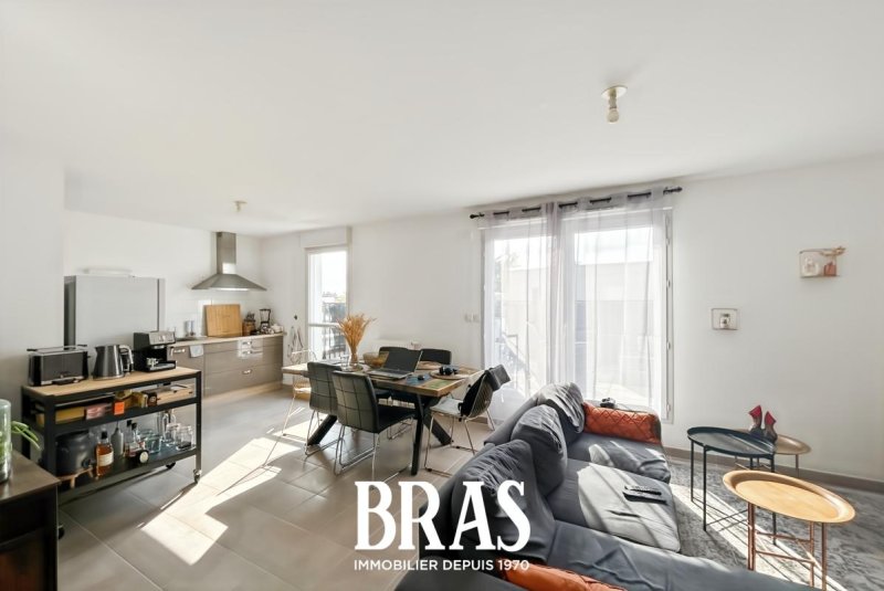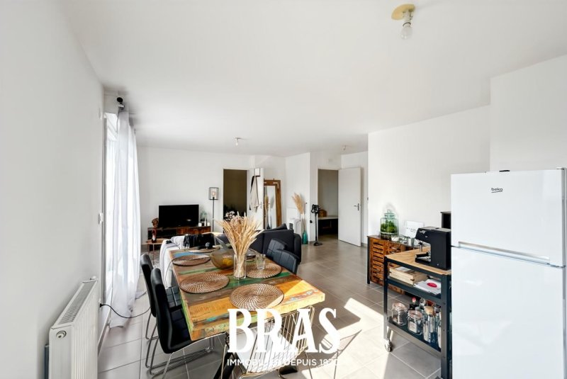Promenade des Nefs - Dans un immeuble de 2015, un appartement de type 3 de 66.36 m² situé au 3ème étage avec ascenseur et comprenant : entrée sur séjour de 31,80m² avec cuisine aménagée et équipée (plaques de cuisson vitrocéramique, four et hotte), donnant sur une terrasse de 14,18m² exposée Ouest, dégagement, 2 chambres dont une avec placard (12.30 et 12.03 m²), salle de bains avec baignoire et meuble vasque, WC séparés.