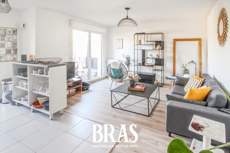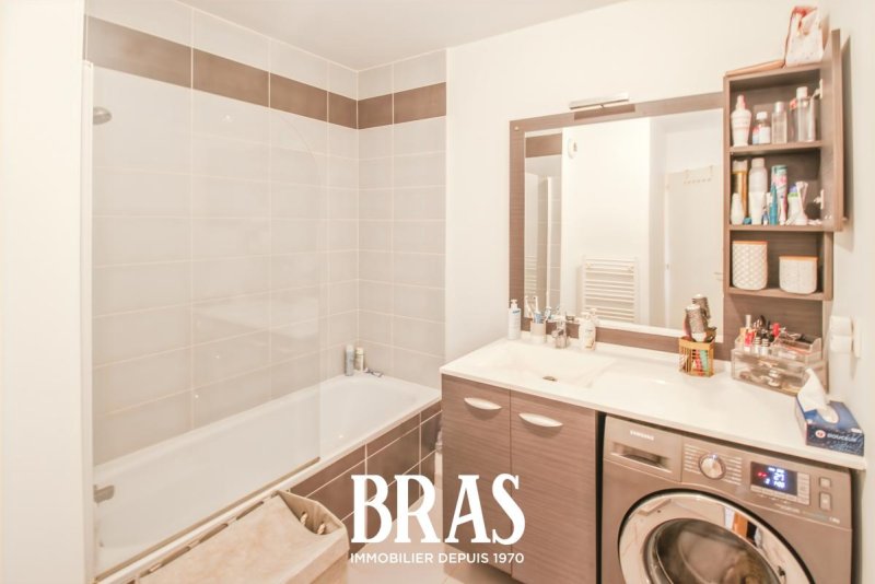 Boulevard des Anglais - Dans une résidence de 2016 labellisée BBC, appartement, entièrement repeint, de type 3 de 58,03m² situé au 3ème étage avec ascenseur et comprenant : entrée avec placard, séjour de 23,83m² avec cuisine aménagée et équipée (plaques de cuisson, four et hotte), donnant sur un balcon de 5.70 m² exposé Nord-Ouest, dégagement, 2 chambres de 10,93m² et 9,14m², salle de bains avec baignoire et meuble vasque, WC séparés.