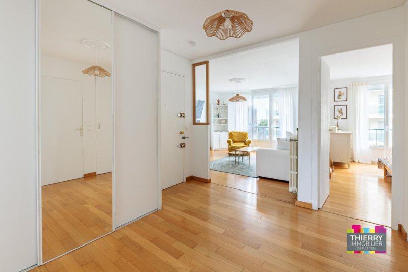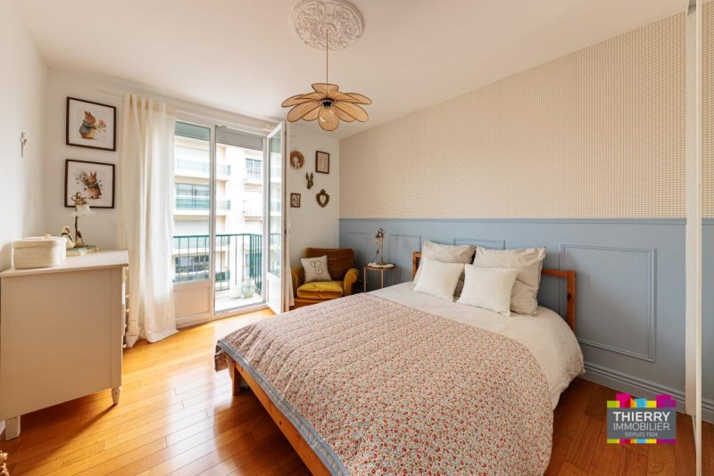 Sa belle entrée donne un regard général sur l'appartement, son séjour sur parquet donnant un accès direct à un balcon ensoleillé, offrant une vue agréable, la cuisine séparée aménagée et équipée d'une hotte et de plaques induction. Deux chambres dont une côté jardin, une salle d'eau entièrement rénovée et un WC séparé.