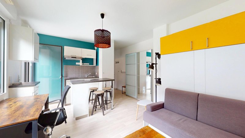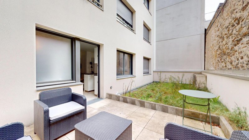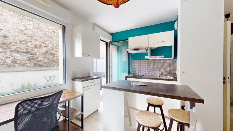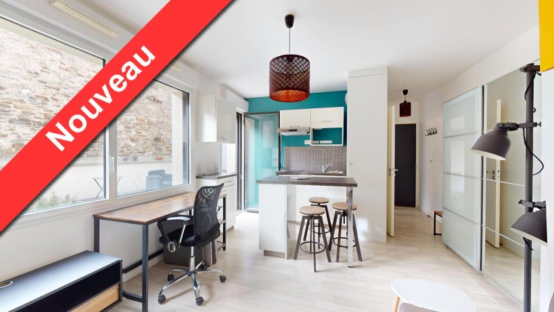 A LOUER - NANTES Ile de Nantes - Appartement 1 pièces MEUBLE de 24.31m² - Un appartement de type T1 MEUBLE 24.31m², idéalement situé à proximité de toutes commodités et des transports ( tramway ligne 2 et 3), ce bien se situe au 1er étage avec ascenseur, il se compose : d'une pièce de vie avec cuisine aménagée et équipée (plaques, hotte, réfrigérateur, micro-ondes) et ilot central, un canapé/lit escamotable, une salle d'eau avec WC. Le bien possède également une terrasse de plus de 13m² avec un coin verdure.