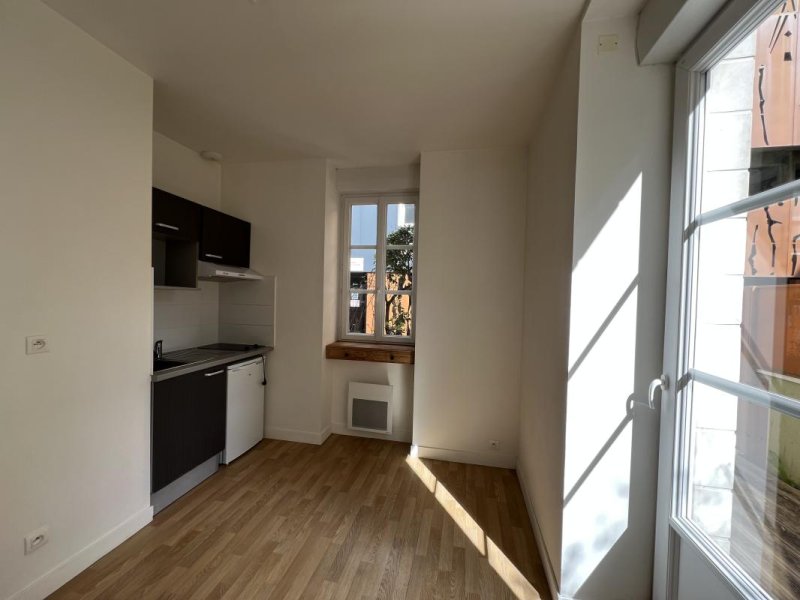 NANTES, QUARTIER ILE DE NANTES, à proximité du tramway arrêt Vincent Gâche, un appartement de type 1 BIS comprenant une entrée desservant une pièce de vie lumineuse avec une kitchenette équipée (plaque de cuisson, hotte, réfrigérateur) donnant sur une terrasse partagée, un coin nuit bien distinct de la pièce principale pour plus d'intimité et de confort, une salle d'eau avec WC et arrivée d'eau machine à laver. « Les informations sur les risques auxquels ce bien est exposé sont disponibles sur le site Géorisques : www.georisques.gouv.fr »