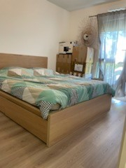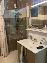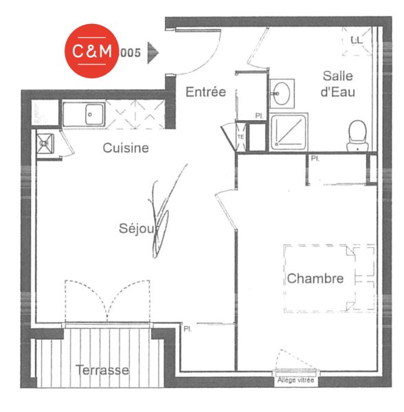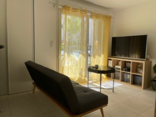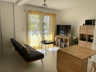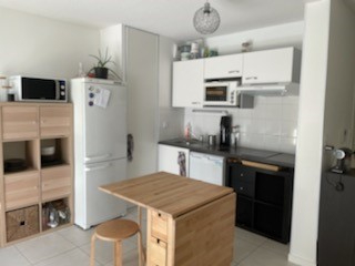 Dans une résidence récente, appartement situé en rez-de-chaussée comprenant une entrée avec un placard, une pièce de vie avec un coin cuisine aménagée et équipée (plaques, hotte, réfrigérateur) et un placard, une chambre avec un placard, une salle d'eau avec wc.