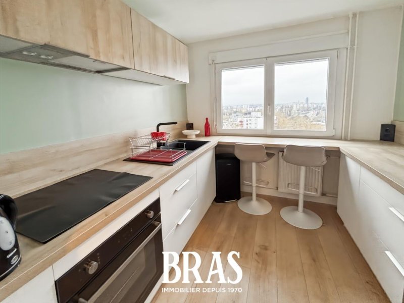 Situé au 11ème étage avec ascenseur, un appartement meublé de type 2 de 47.20 m² comprenant une entrée avec placard, un séjour sur balcon, une cuisine aménagée et équipée (four, plaques de cuisson induction, hotte, réfrigérateur, congélateur), une chambre avec placard, une salle d'eau avec lave linge, WC. Une cave et un garage au sous-sol Catégorie B.