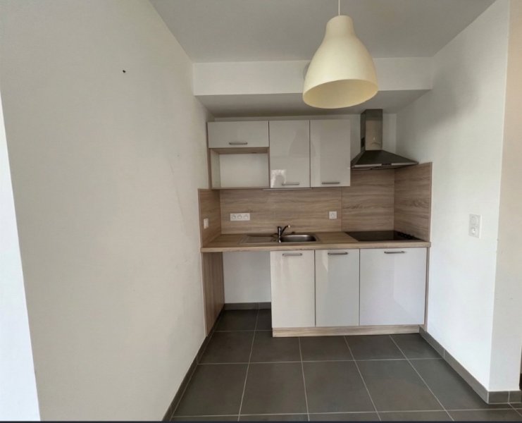 L'entrée dispose d'un placard intégré, la pièce de vie lumineuse s'ouvre sur une agréable terrasse, la cuisine ouverte est entièrement aménagée et équipée d'une hotte, de plaques et d'un frigo top, une chambre et une salle d'eau avec wc.