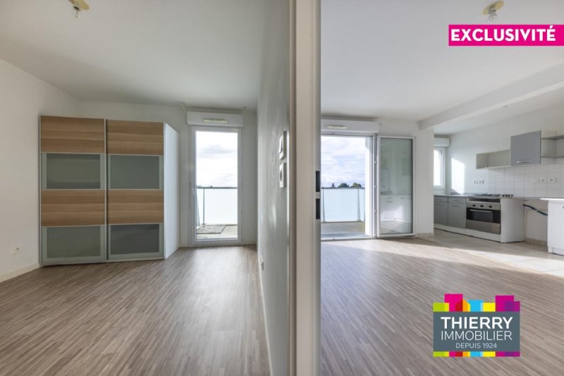 NANTES, QUARTIER SAINT JACQUES. Au pied du busway , arrêt Clos Toreau et des commerces (SUPER U) . Dans résidence BBC appartement T2 comprenant : une entrée avec placard, un séjour donnant sur un balcon de 8.57m², une cuisine ouverte aménagée et équipée, une chambre, une salle d'eau avec wc. Parking privatif. « Les informations sur les risques auxquels ce bien est exposé sont disponibles sur le site Géorisques : www.georisques.gouv.fr »