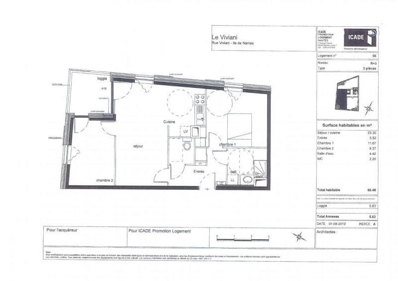 NANTES - ILE DE NANTES, dans résidence BBC, T3 au 3ème étage, comprenant : Entrée avec placard, séjour carrelé de 23.30 m² avec cuisine ouverte aménagée et équipée (4 plaques vitro, hotte), donnant sur loggia de 5.63 m², 2 chambres sur parquet dont une avec placard, sde (douche), wc. Parking couvert. Les informations sur les risques auxquels ce bien est exposé sont disponibles sur le site Géorisques : www.georisques.gouv.fr. CONDITIONS RESSOURCES : SCELLIER INTERMEDIAIRE