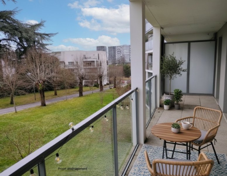 L'entrée dispose d'un placard intégré, la pièce de vie lumineuse s'ouvre sur un agréable balcon, la cuisine ouverte sur le séjour est entièrement aménagée et équipée d'une hotte, de plaques et d'un four.