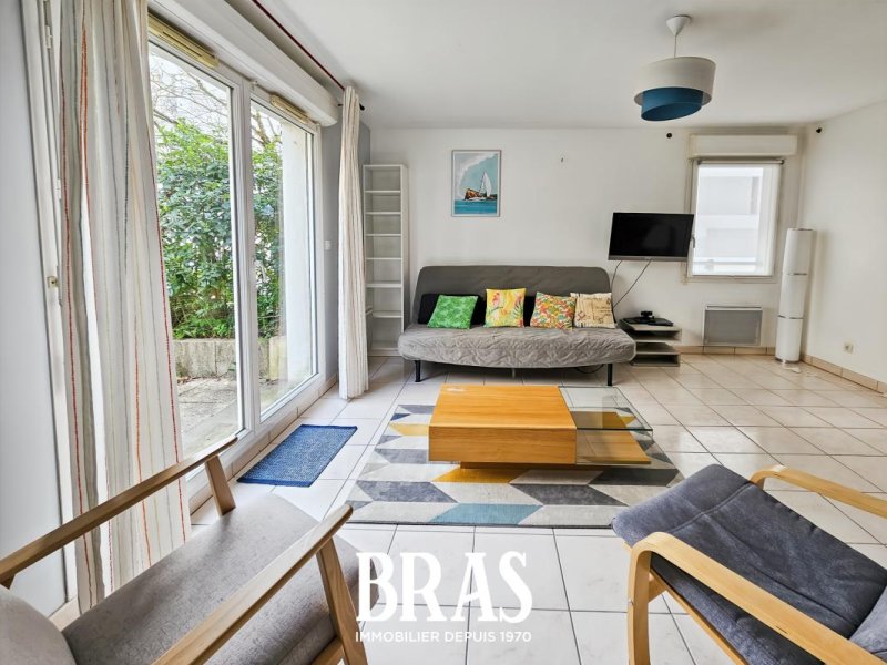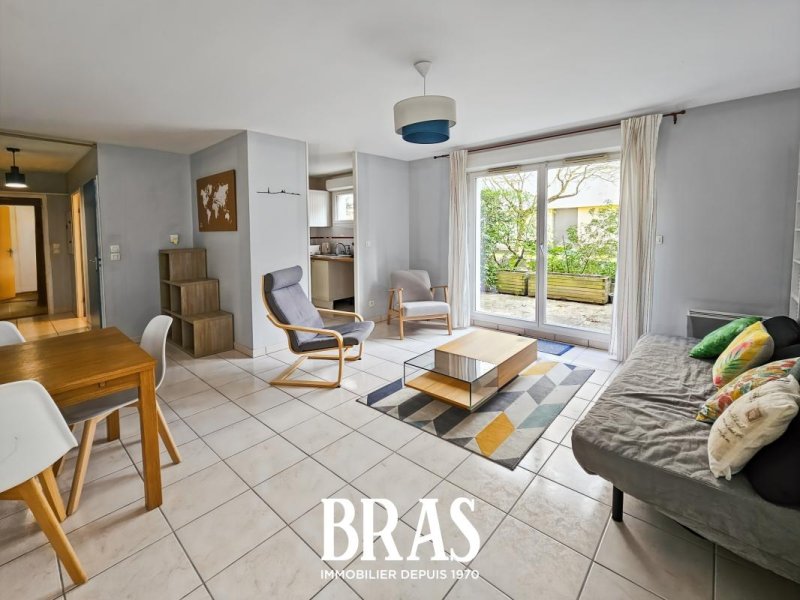 Au sein d'une copropriété calme et bien entretenue, appartement de type 3 meublé en rez-de-chaussée comprenant une entrée, une pièce de vie lumineuse donnant sur une terrasse de 9.14 m², cuisine ouverte équipée et aménagée (plaque 4 feux, four, meubles hauts et bas, micro onde, emplacement lave-vaisselle), un dégagement avec placard, salle de bains avec lave-linge, WC séparés, une grande chambre avec placard, un bureau pouvant faire office de chambre d'appoint.