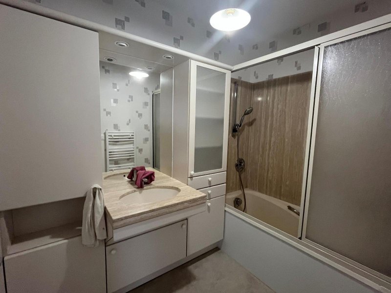 Il comprend une entrée avec placards, un séjour donnant accès à une loggia fermée, une cuisine aménagée et équipée (plaques inductions, hotte, évier, lave-vaisselle et réfrigérateur), trois chambres , une salle de bains, une petite buanderie avec arrivée d'eau pour machine à laver et un WC séparé