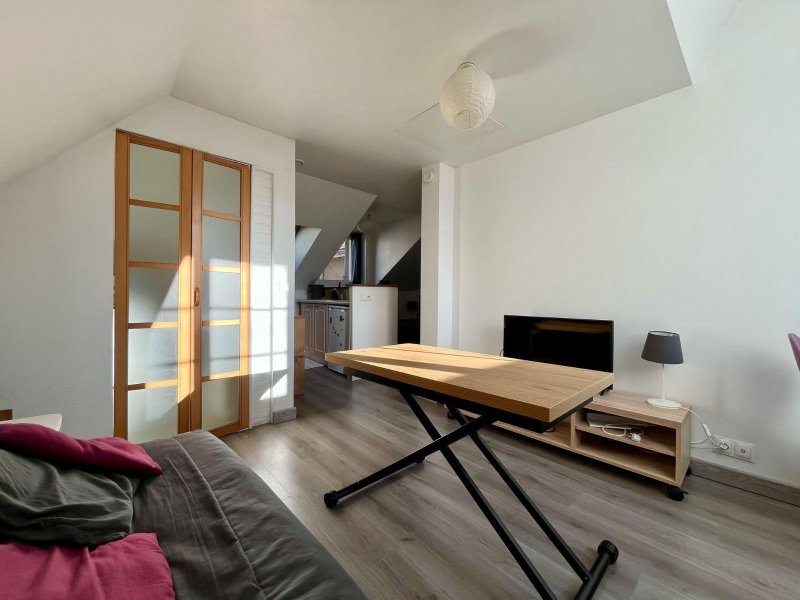 STUDIO MEUBLEE - Idéal étudiant - Nantes Saint-Clément - Chalâtres - Idéalement situé pour les étudiants, proche de l'IUT de Nantes, des transports en communs. Venez découvrir un studio mansardée de 19.21m2 (au sol 27.69m2), agréablement aménagée avec beaucoup de charme. Il se compose d'une pièce de vie lumineuse en L, un coin nuit, une kitchenette, une salle de bains et wc. Chauffage ind électrique - Disponible immédiatement. Le bien est soumis au statut de la copropriété.