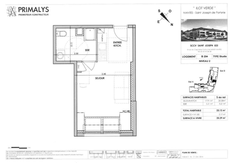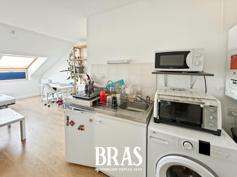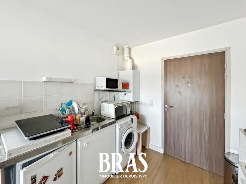 Dans une résidence de 2016 labellisée BBC, appartement de type 1 de 23,12 m², situé au 2ème étage avec ascenseur et comprenant : entrée sur pièce de vie de 17,91m² avec kitchenette aménagée et équipée (plaques de cuisson électriques et réfrigérateur table top) exposée Nord-Est, salle d'eau avec douche, meuble vasque et WC.