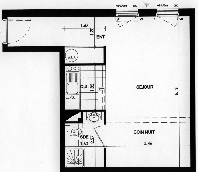 NANTES - Quartier GESVRE/ JONELIERE. A proximité des transports. Appartement de type studio comprenant : une entrée avec placard, un séjour carrelé de 21,20 m² avec un coin cuisine (2 plaques + frigo), un coin nuit, salle d'eau avec wc.