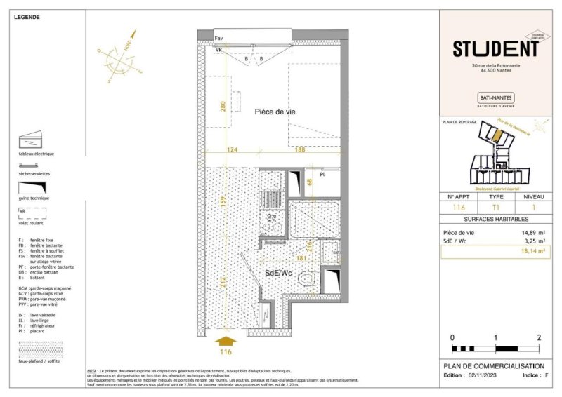 Studio Meublé situé au 43b et 45 bd Gabriel Lauriol à Nantes, à proximité immédiate des grandes écoles et pôles universitaires PETIT PORT, cette résidence neuve offre un emplacement géographique de qualité . Accès direct et rapide au centre-ville et Gare SNCF (< de 15 min). Au pied des transports : tramway (L2 - arrêt Morrhonnière), lignes de bus (L26 - arrêt Fructidor). Liaison rapide à moins de 10 min à pied aux équipements sportifs, bords de l'Erdre et vallée du Cens