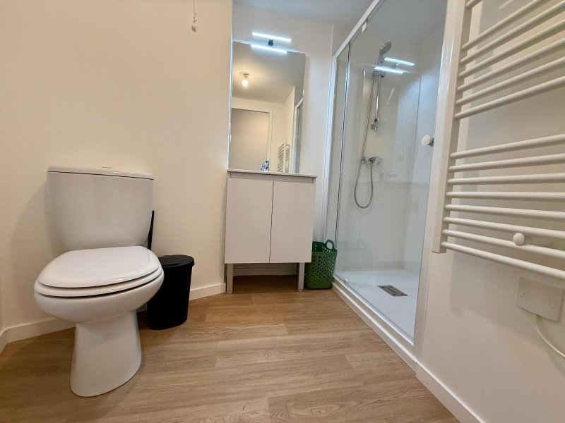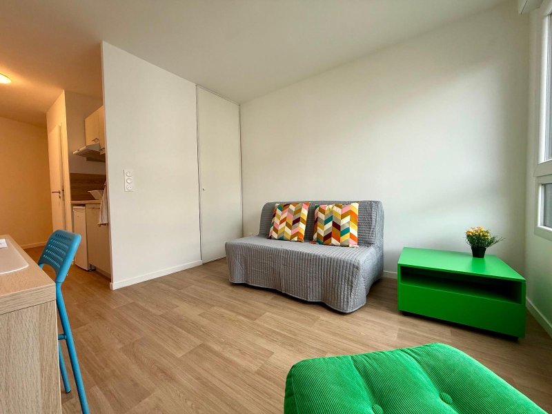 Quartier Petit Port - T1 MEUBLÉ dans résidence neuve, idéal étudiant - Nantes Pont du Cens - Petit port - Venez découvrir un appartement T1 meublé de 26.20m², à proximité des écoles et des transports en commun. Ce logement comprend une entrée avec dégagement, une pièce de vie lumineuse avec placard, un coin cuisine aménagé et équipé (rangements, plaque, hotte, réfrigérateur, micro-ondes) et une salle d'eau avec WC. La résidence offre des services pensés pour les étudiants : conciergerie hebdomadaire, salle commune et ligne téléphonique dédiée. Chauffage et eau chaude collectifs - Eau froide et électricité privatives. Le bien est soumis au statut de la copropriété.