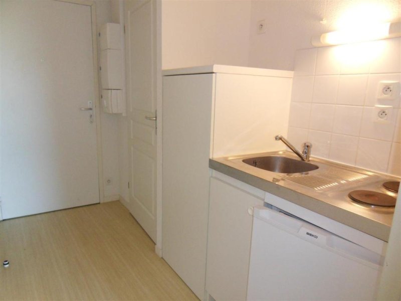 NANTES - Quartier PETIT PORT. Dans résidence étudiante, studio comprenant une entrée avec coin cuisine équipé (plaques et frigo), une pièce de vie avec placard, une salle d'eau avec wc. Parking couvert. Proche TRAM ligne 2 arrêt Recteur Schmitt.