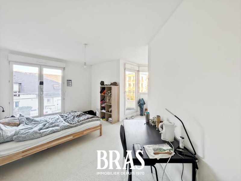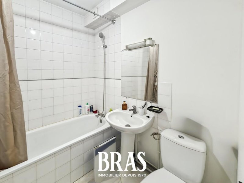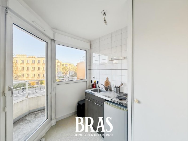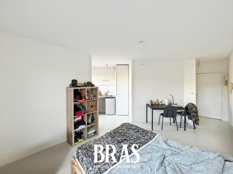 Rue du Château de l'Éraudière - Dans une résidence calme, à proximité des commerces et transports en communs, appartement de type 1 de 23,15m² situé au 1er étage sans ascenseur et comprenant : entrée avec placard, pièce principale de 17,39m² avec placard, kitchenette aménagée et équipée (plaque de cuisson et réfrigérateur table top), donnant sur balcon de 2,97m², une salle de bains avec baignoire, meuble vasque et WC.