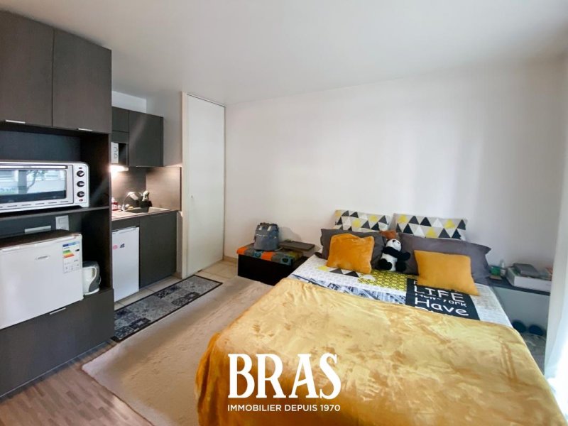 Boulevard Robert Schuman - Dans une résidence calme, au pied des commerces et transports en communs, appartement de type 1 de 23,75m² situé au 1er étage avec ascenseur et comprenant : entrée, séjour avec kitchenette aménagée et équipée (plaque de cuisson électriques, réfrigérateur table top), salle d'eau avec douche, meuble vasque et WC.