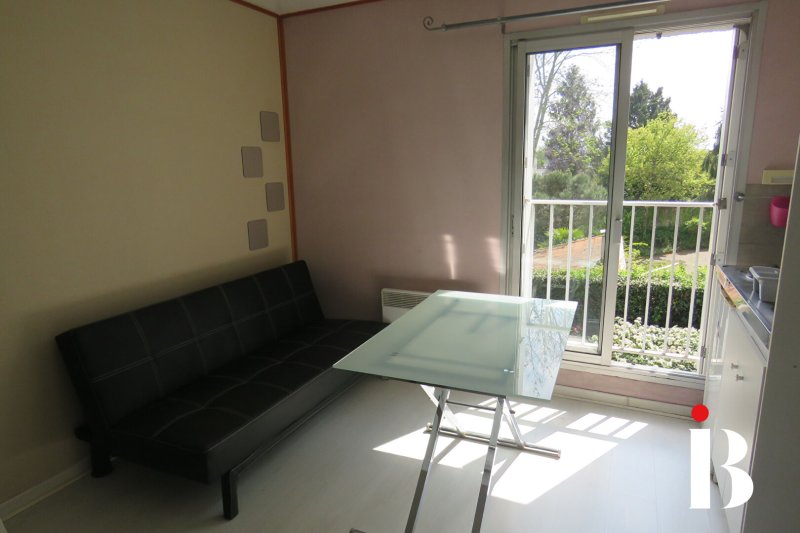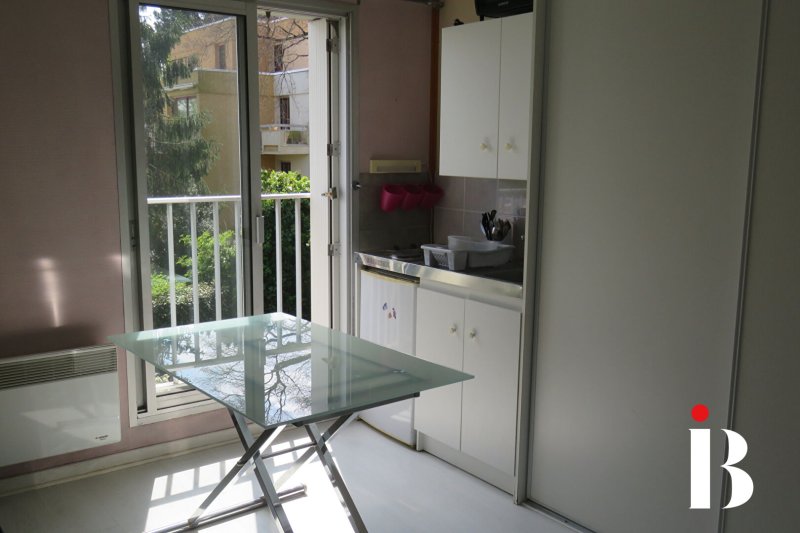 Dans le quartier prisé de la Jonelière, studio meublé dans petit collectif au calme, à deux pas de l'Erdre et des transports comprenant une pièce de vie avec placard, un coin cuisine aménagée et équipée, une salle d'eau avec WC.