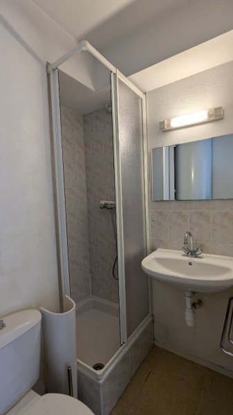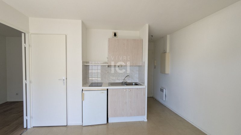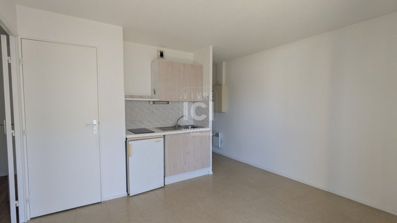 Il comprend : une entrée avec placard, une pièce de vie avec coin cuisine (hotte / plaques / réfrigérateur top), une salle d'eau avec WC et une chambre.