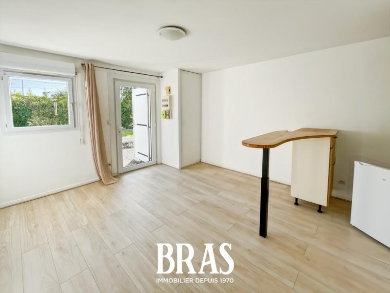 Dans un environnement calme proche de terrain de tennis, un appartement de type 1 bis de 29.89 m², situé au rez-de-chaussée et comprenant : entrée, séjour avec cuisine aménagée et équipée (plaques de cuisson deux feux vitrocéramiques et hotte), dégagement avec placard, une chambre avec placard, salle d'eau avec branchement machine à laver et WC.