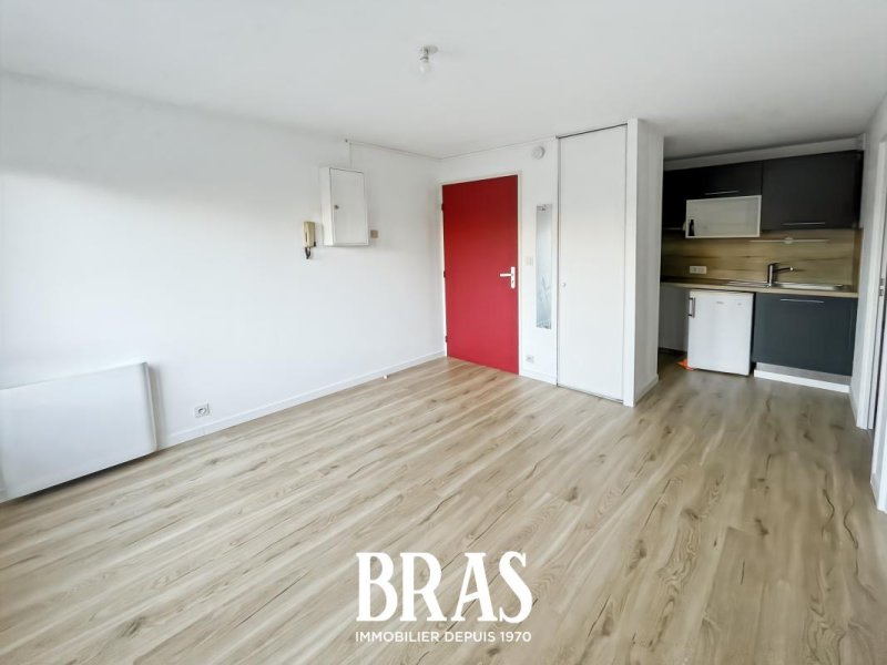 Rue du Pin - Dans un secteur privilégié, proche bus et tram (ligne 2), un appartement de type 1 bis de 28.31 m² situé au 1er étage sans ascenseur et comprenant : pièce de vie de 15,14m² avec cuisine équipée (table de cuisson vitrocéramique, hotte et réfrigérateur table top), placard, espace nuit de 7.88 m², salle de bains avec baignoire, meuble vasque et WC.