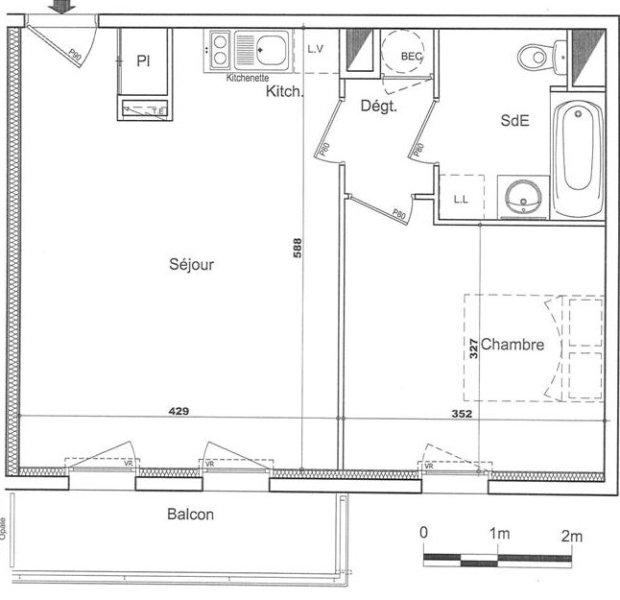 NANTES - QUARTIER BD JULES VERNE, proche des commerces et transports, appartement Type 2 comprenant une entrée avec placard, un séjour de 24.91 m² avec cuisine ouverte, donnant sur balcon de 4.71 m², un dégagement, une chambre, salle de bain avec wc. Box fermé. CONDITIONS RESSOURCES : SCELLIER INTERMEDIAIRE