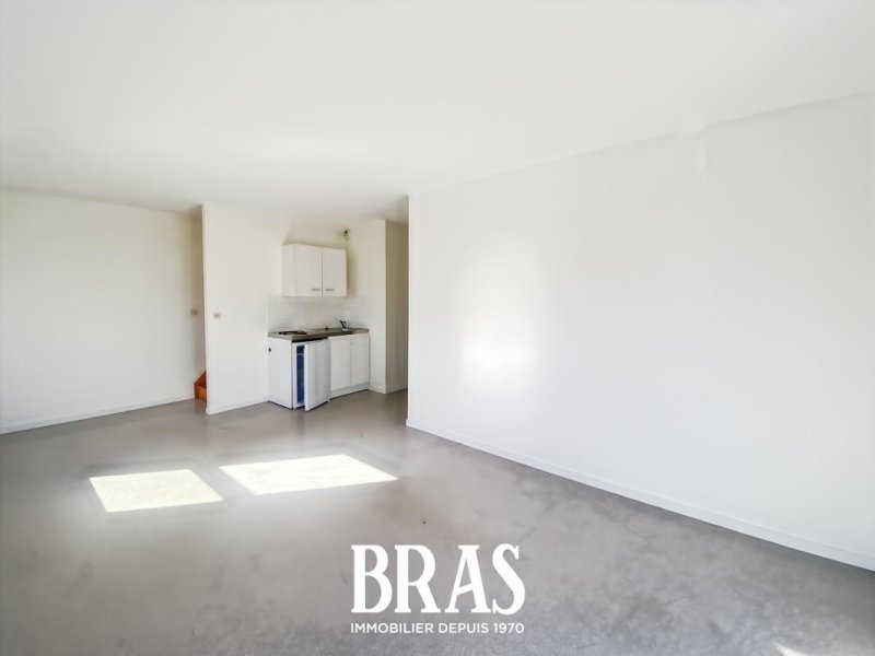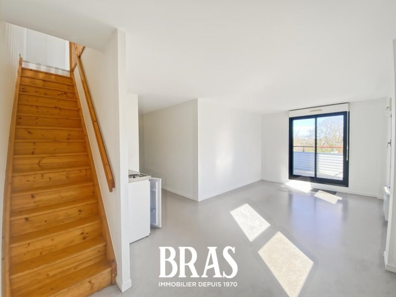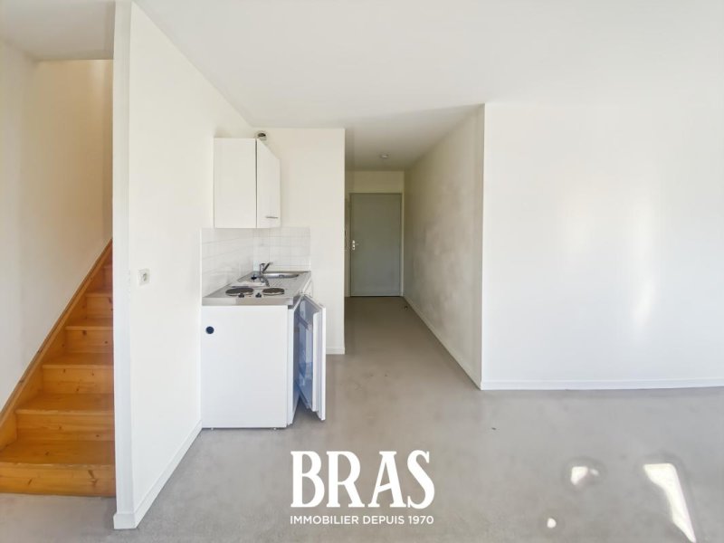 Un appartement de type 2 non meublé en duplex de 40,50m² situé au 3ème et dernier étage sans ascenseur et comprenant au 1er niveau : une entrée, un séjour de 20,90m² avec avec cuisine aménagée et équipée (plaques de cuisson électriques et réfrigérateur table-top), donnant sur une terrasse partagée de 20m², une salle d'eau avec douche, lavabo et WC.