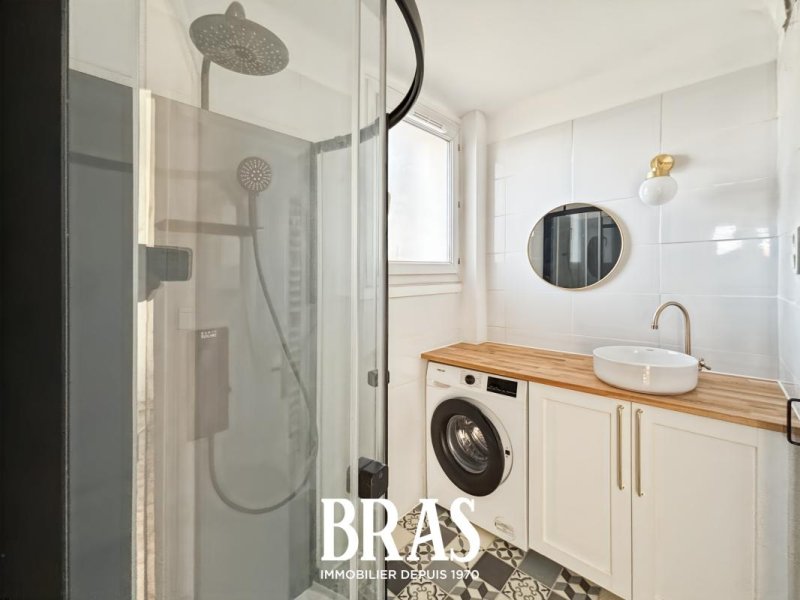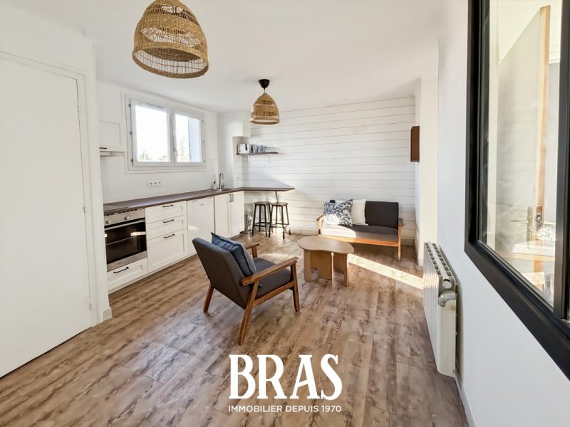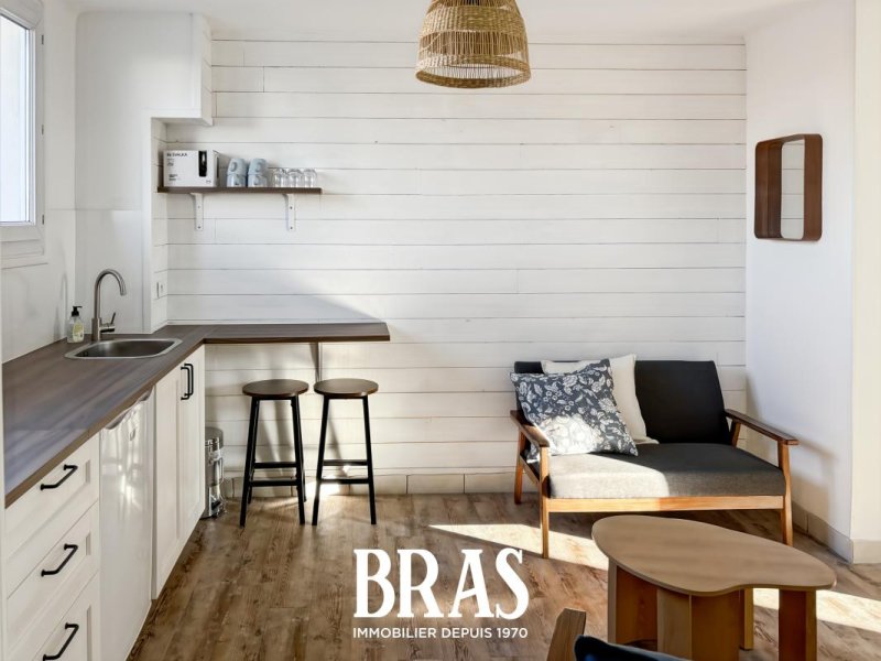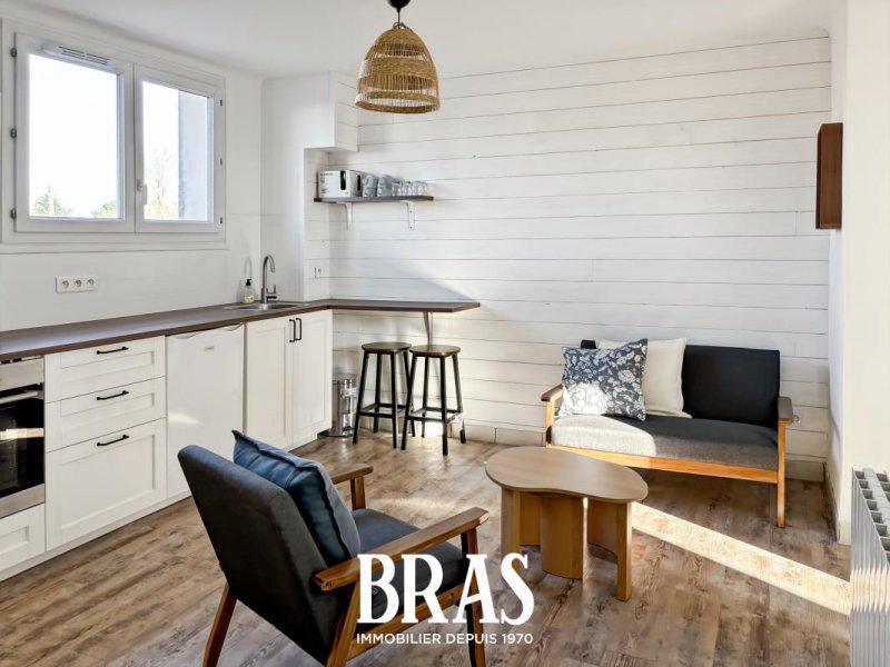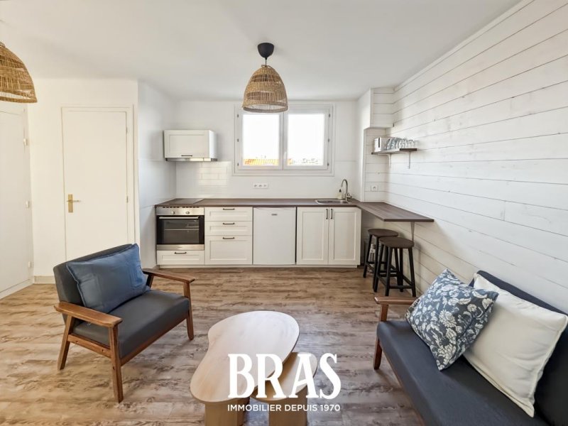 Rue Commandant Jean Mahé - Dans une résidence calme, appartement MEUBLÉ de type 1 bis de 30,75m² situé au 2ème étage sans ascenseur et comprenant entrée avec placard sur pièce de vie de 13,63m² avec cuisine aménagée et équipée (plaques de cuisson induction, hotte, four et réfrigérateur), une chambre de 9,14m², une salle d'eau avec douche et meuble vasque, WC séparés.