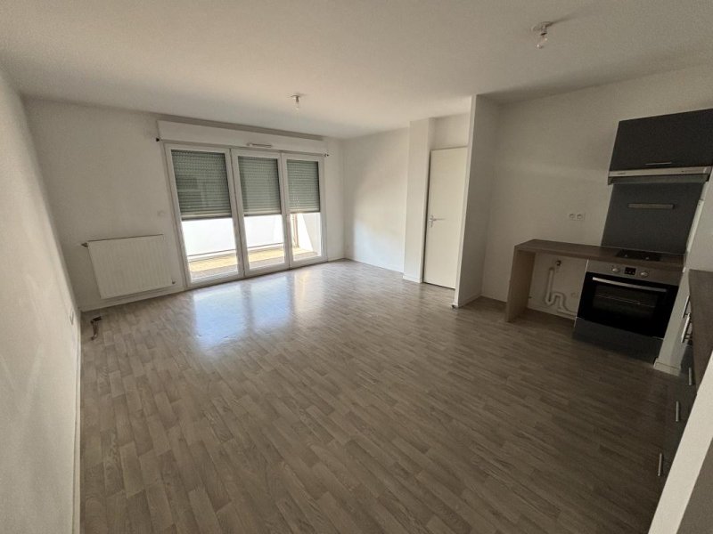 NANTES- PONT DU CENS, à proximité des commerces, dans résidence BBC, type 2 comprenant: une entrée avec cellier, un séjour donnant sur une terrasse de 5m², cuisine ouverte aménagée et équipée de plaques, d'une hotte et d'un four, une chambre avec rangement, une salle d'eau, wc, dégagement. Parking couvert.