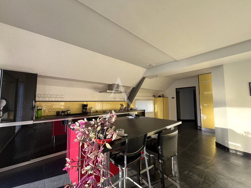 Superbe appartement aux prestations haut de gamme. Il se compose d'une entrée, d'un vaste salon-séjour de plus de 50m² avec cheminée équipée d'un insert, et d'une cuisine moderne entièrement aménagée et équipée (hotte, plaques de cuisson, réfrigérateur, lave-vaisselle). L'espace nuit comprend 2 chambres spacieuses, chacune avec sa propre salle de bain (baignoire balnéo et douche à l'italienne), ainsi qu'un grand placard/dressing. Profitez d'une belle terrasse de 21m² orientée ouest, idéale pour profiter du soleil jusqu'en fin de journée. Confort optimal grâce au chauffage au sol. Un emplacement de 12m² dans le garage et place de parking privatif.