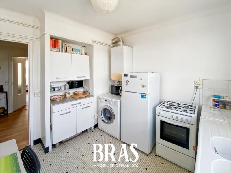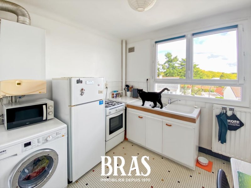 Situé au calme, un spacieux appartement de type 3 de 69.75 m² situé au 2ème étage avec ascenseur et comprenant : une entrée, une cuisine aménagée et équipée (gazinière avec plaque, four, un réfrigérateur avec un congélateur), un cellier, un séjour, un couloir avec placard desservant 2 chambres dont une avec placard et un balcon, une salle d'eau avec douche, vasque sur meuble et WC séparés.