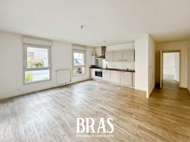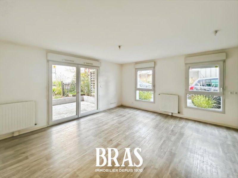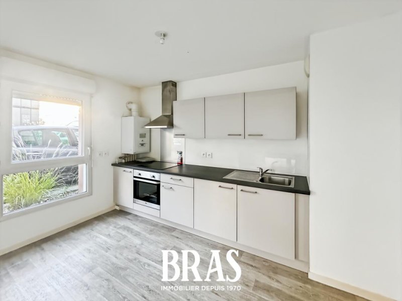 Dans une résidence récente, appartement de type 3 situé en rez-de-chaussée de 63.29m² et comprenant : Une entrée, un séjour avec cuisine aménagée et équipée (four, hotte et plaques de cuisson à induction), donnant sur une terrasse de 10 m² et jardinet privatif de 5 m², deux chambres dont une avec placard, une salle d'eau avec une douche et WC séparés.