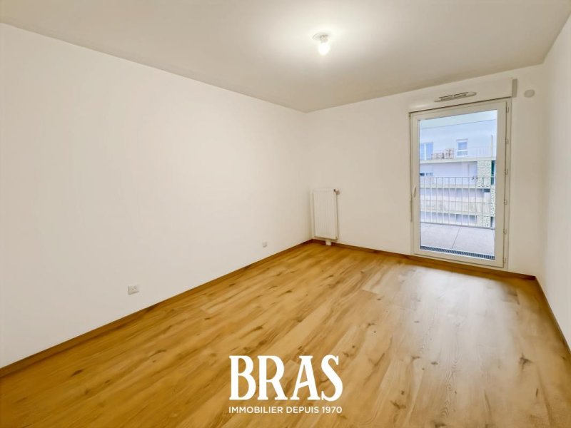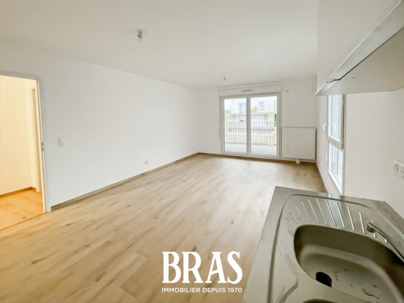 Dans une résidence neuve, un appartement de type 3 de 57.15 m², situé au 4ème étage avec ascenseur et comprenant : une entrée, une pièce de vie donnant sur un balcon de 10.84 m² exposé est avec vue sur le stade de la Beaujoire, cuisine simple, deux chambres de 12.13 m² et 9.21 m², une salle de bains, WC séparés.