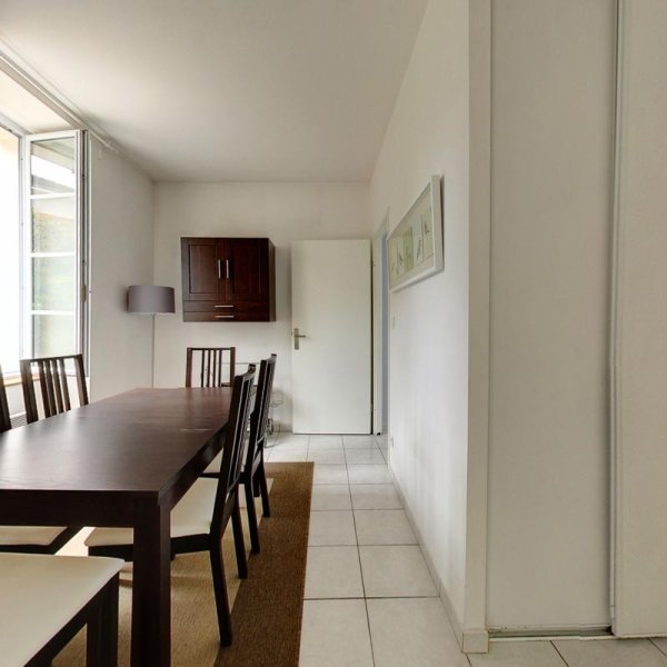 NANTES - QUARTIER JONELIERE, à proximité immédiate des Facultés et de l'école Audencia, sur l'arrière au calme, appartement de type 3 MEUBLE avec soin, comprenant un séjour (canapé, 2 fauteuils, table basse, table à manger, 4 chaises) une cuisine entièrement équipée (plaques, hotte, frigo, lave linge, four et micro ondes), deux chambres avec lits et penderie donnant sur jardin privatif, une salle de bain avec lave linge. Parking couvert. Les informations sur les risques auxquels ce bien est exposé sont disponibles sur le site Géorisques: www.georisques.gouv.fr