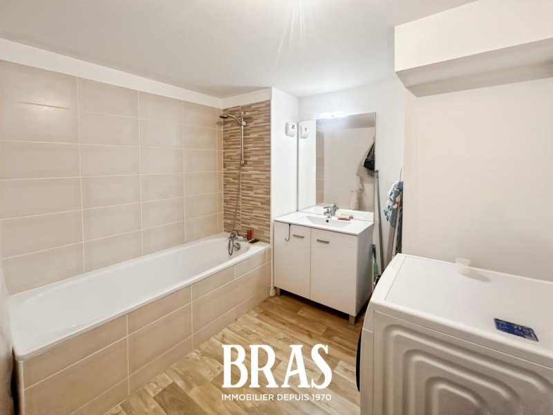 Dans une résidence appartement de type 3 DUPLEX de 73,30 m² situé au 3ème étage avec ascenseur et comprenant : une entrée, une pièce de vie de 25,70m² avec cuisine aménagée et équipée (plaques de cuisson, hotte et four), donnant sur une terrasse de 23,60m² exposée Ouest et un balcon de 4,40m², une salle de bains avec baignoire et meuble vasque, WC séparés.