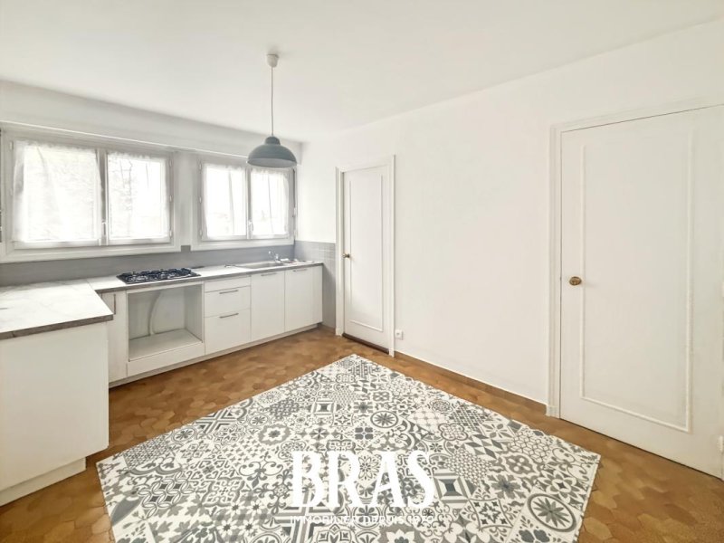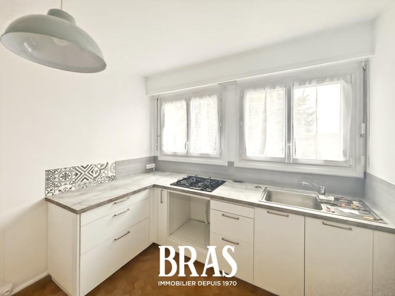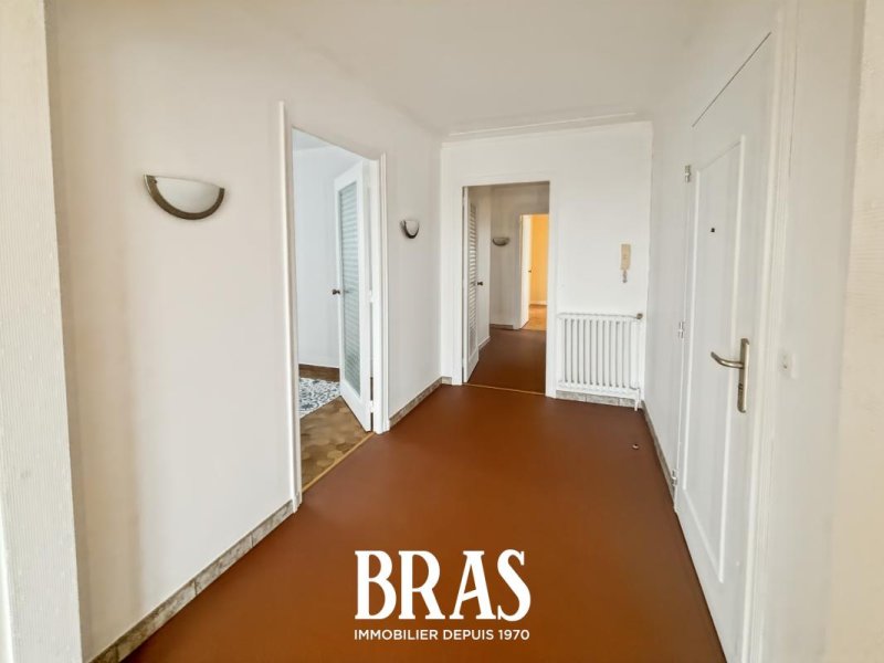 À proximité des commerces et transports en communs (bus 23 et C6), appartement de type 4 de 100,74m² situé au 3ème étage avec ascenseur et comprenant : entrée, salon-séjour de 39,33m², cuisine de 11,98m² aménagée et équipée (plaques de cuisson gaz) avec buanderie attenante, dégagement avec placards, 2 chambres de 13,56m² et 13,08m², une salle d'eau avec douche et meuble vasque, WC séparés.