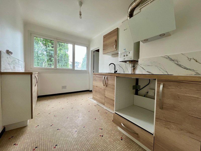 T5 rénové - Rd Pt de RENNES - Nantes Rond-point de Rennes - Proche Rd Pt de RENNES, transports en commun et commerces de proximité, beau T5 rénové, traversant et lumineux, de 96.13 m², se composant : d'une grande entrée et dégagement, un double séjour sur balcon, bien exposé, une cuisine aménagée et semi-équipée (plaque de cuisson et hotte), une arrière-cuisine, trois chambres dont une donnant sur balcon, une salle de bains, wc, placards, une cave et un garage fermé complètent ce bien. Chauffage ind. au gaz. Libre de suite.