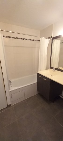 Bel appartement à louer comprenant pièce à vivre avec cuisine ouverte aménagée et équipée (plaques de cuisson et hotte) donnant sur terrasse et jardinet, chambre avec placard, sdb avec wc. Une place de stationnement extérieur.
