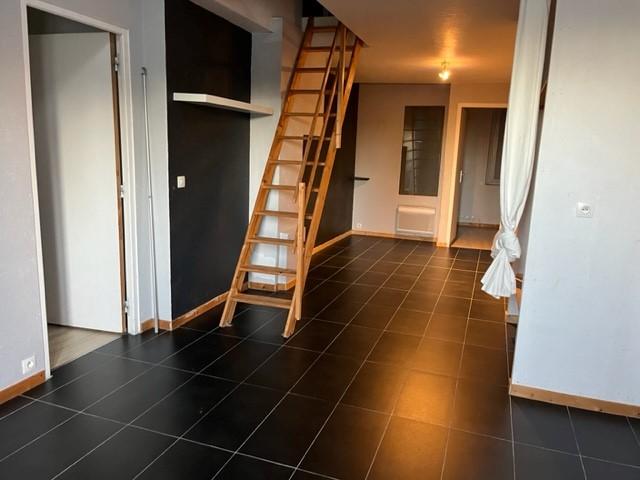 A LOUER - BOUGUENAIS - Appartement T4 de 61.35m² - Appartement T4 de 61.35m², au 1er étage sans ascenseur de ce petit collectif proche des commerces, il se compose d'une entrée avec salle d'eau et WC séparés; une grande pièce de vie avec coin cuisine aménagé et équipé ( plaques, hotte, réfrigérateur, lave vaisselle et four), 3 chambres dont une avec placard et une en sous pente en étage.