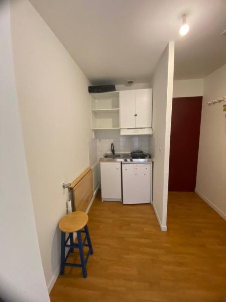 Studio comprenant un coin cuisine équipé (frigo top et plaques électriques), un coin séjour avec placard, coin nuit avec un lit double, une salle de bains avec wc.