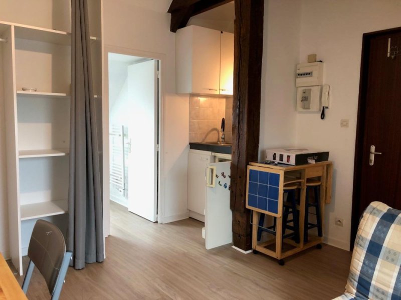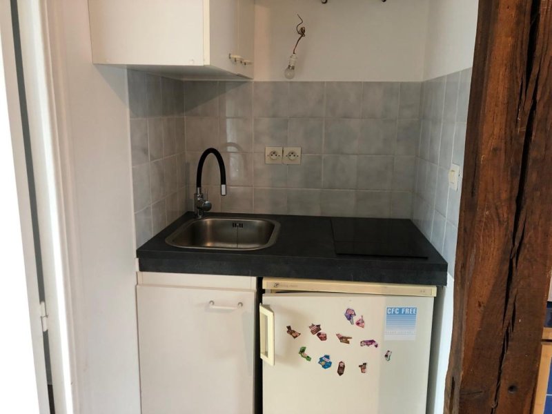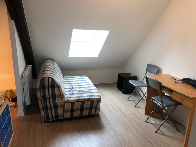 Au 4ème étage, un studio entièrement rénové et meublé comprenant une pièce principale (bureau, table pliante, canapé BZ, coin nuit avec matelas 1 place) et coin cuisine équipée (frigo top, plaques électriques), salle de bains et wc.