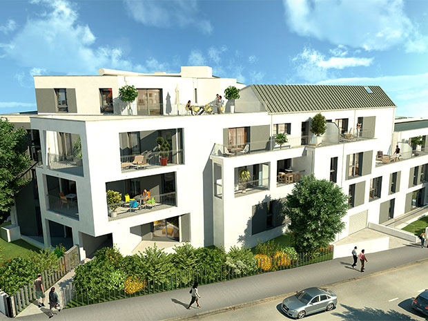 Appartement de type 2 de 45.6m2 au 3e étages comprenant une entrée avec placard, une pièce de vie avec cuisine ouverte aménagée et semi-équipée donnant accès à la terrasse de 36.6m2, une chambre, une salle d'eau avec wc.