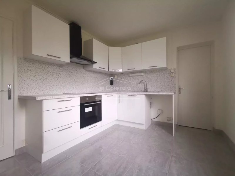 Au RDC : entrée, WC séparé, salle de douche, salon/salle à manger, cuisine neuve A/E (plaque, hotte, four) avec accès au garage.